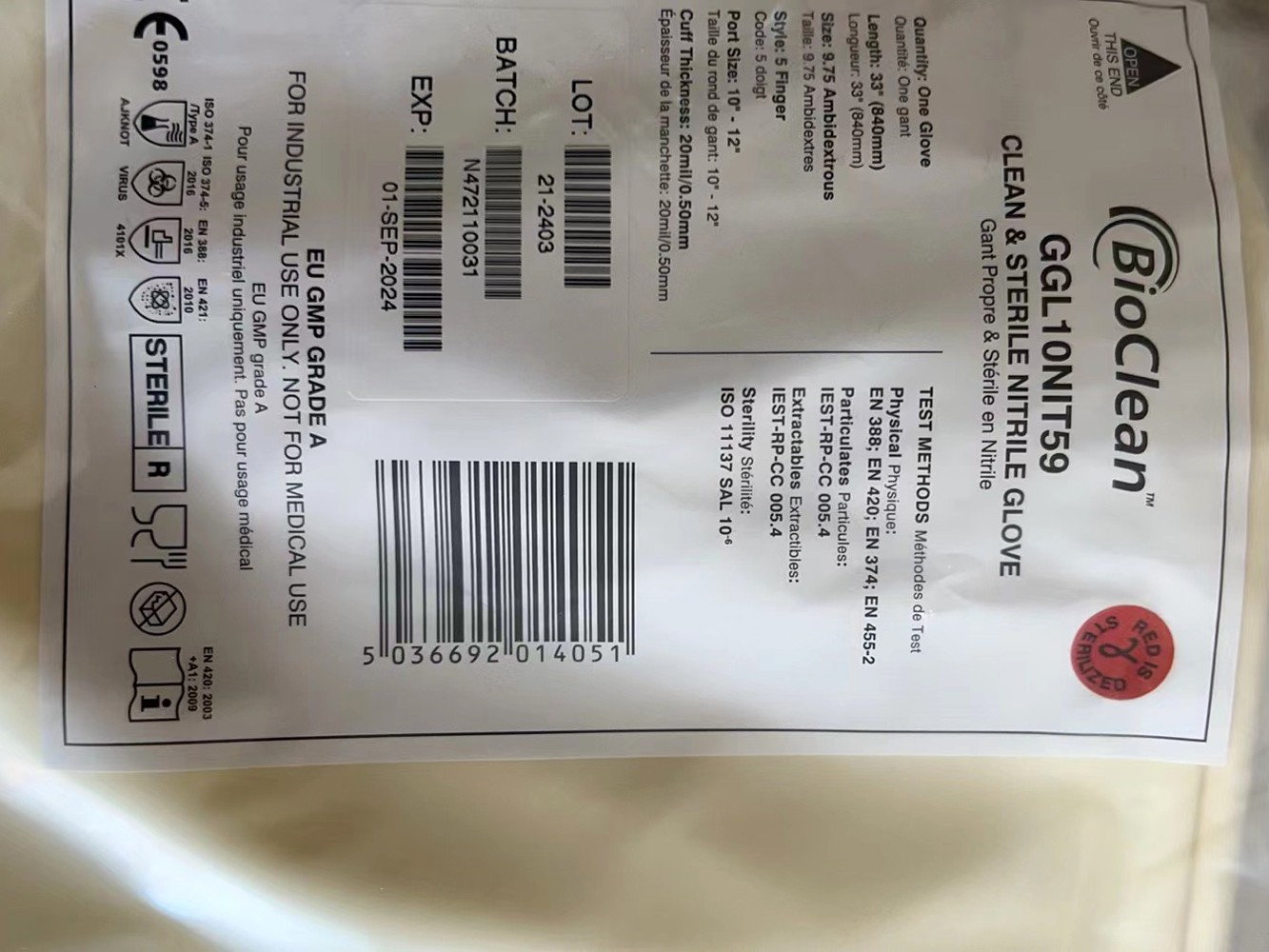 经验证的BioClean无菌RABS和隔离器手套采用不含促进剂的丁腈橡胶制成,其颗粒脱落水平极低且具有极佳的静电放电特性。我们的GGL系列 手套专门设计用于产品接触区域,经过全面的无菌验证,SAL(无菌保证水平)为10 -6,并且有多种袖口周长尺码可供选择。